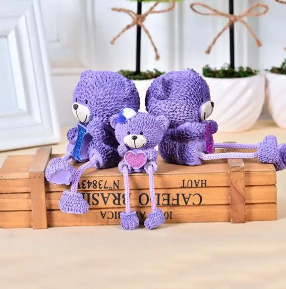 3pcs Chinese Resin Handicraft Lovely Purple Teddy Bear Couple Lovers Decorations Cartoon Bear Weddi