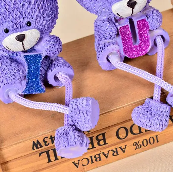 BEST QUALITY 3pcs Chinese Resin Handicraft Lovely Purple Teddy Bear Couple Lovers Decorations Cartoon Bear Weddi