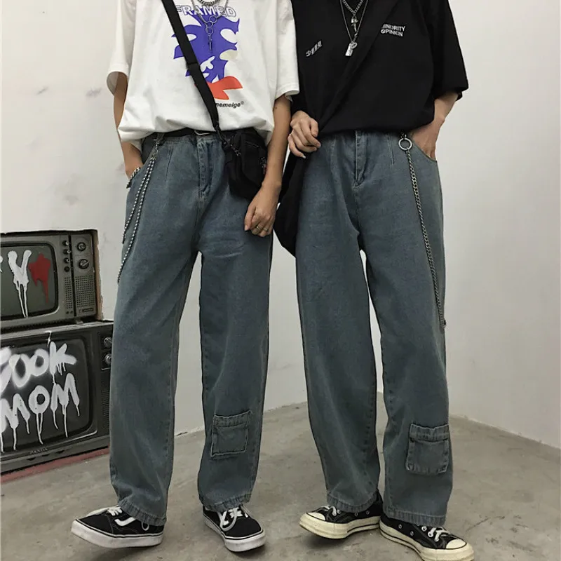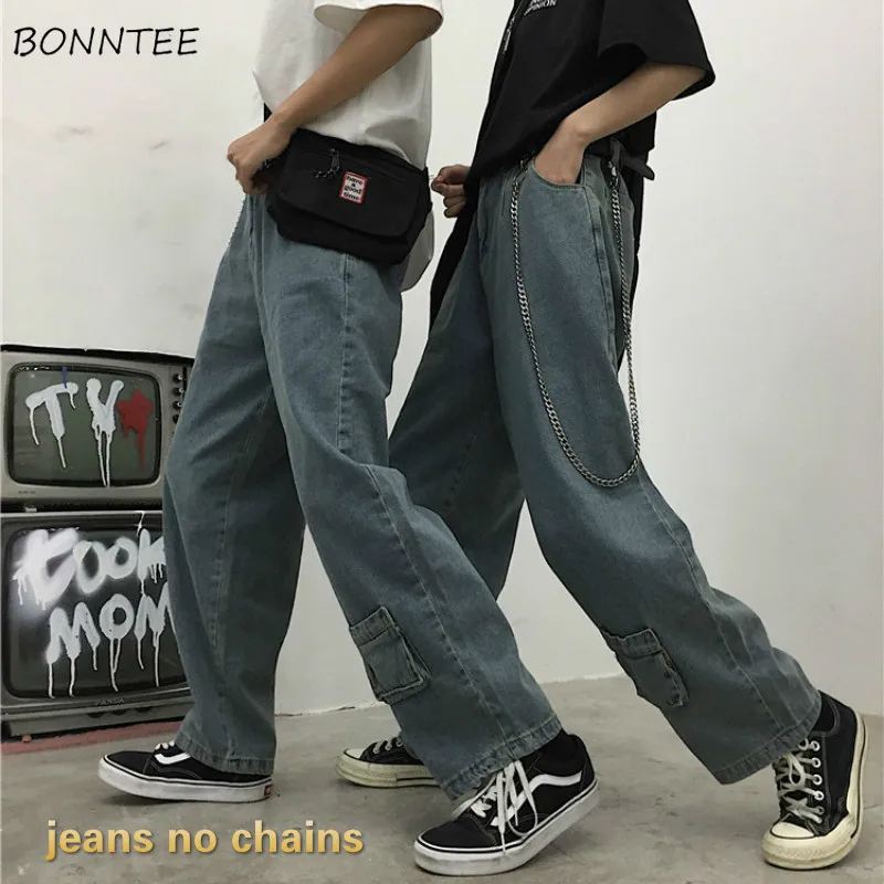 HOT SALE Wide Leg Jeans Women Big Pockets Harajuku BF Hip-Hop All-match Oversize Unisex Couples Trousers Den